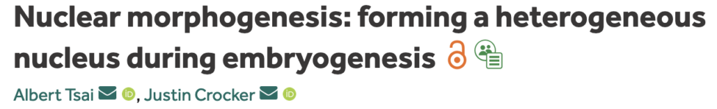 - Nuclear morphogenesis: forming a heterogeneous nucleus during embryogenesis. Tsai A, Crocker J. Development. 2022 Feb 15;149(4):dev200266. Pubmed