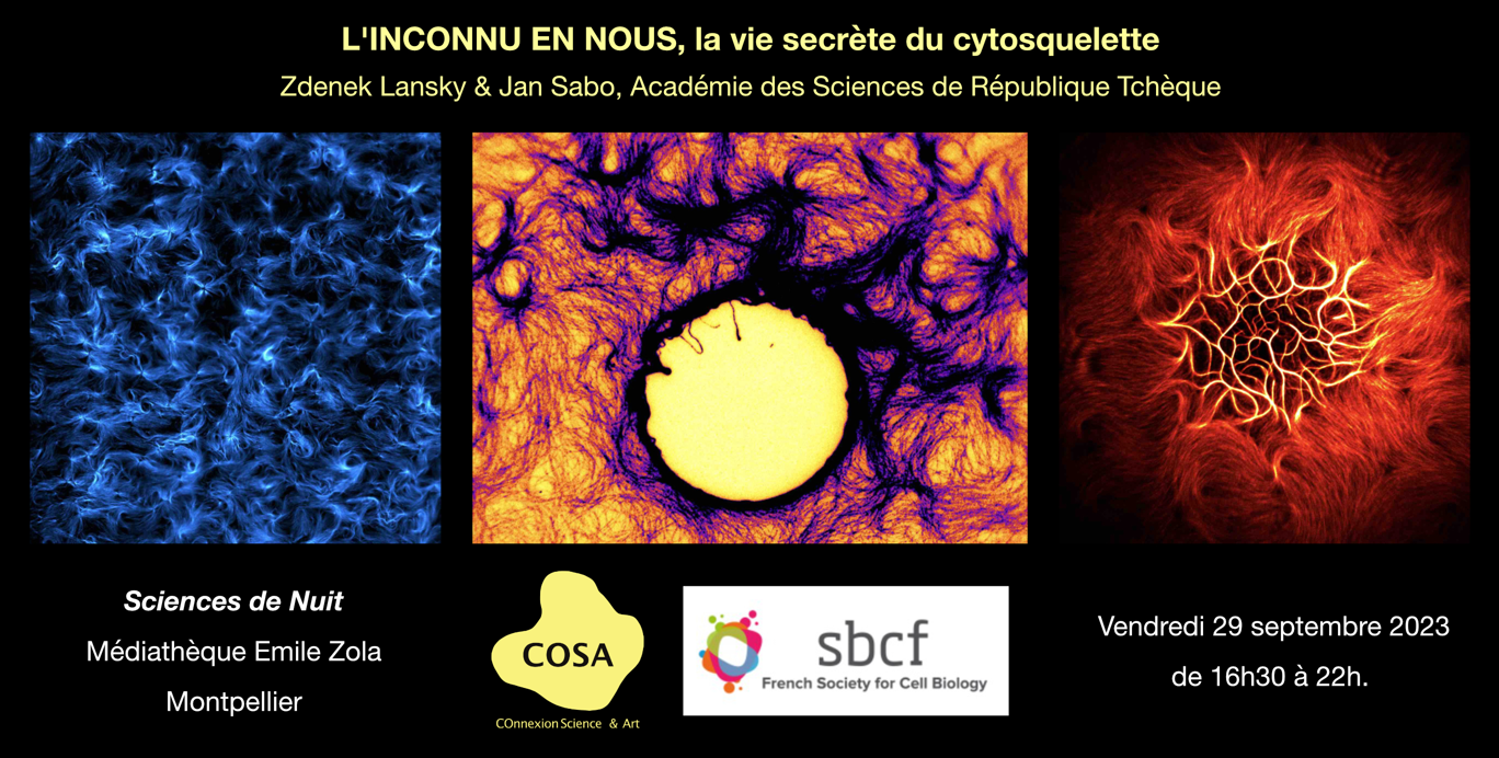 COSA est un groupe de chercheur·e·s Montpelliérain·e·s engagé·e·s dans la médiation scientifique utilisant l’interaction avec des artistes comme vecteur d’interaction avec le public. Ce groupe est géré par nos voisins de l’institut Charles Gerhardt Montpellier ICGM UMR5253 (Balard). Cette année, inspirée par la thématique “vivant, vivants” la designeuse/graphiste Célia Teboul invitée à la session Montpelliéraine parmi 15 designers Montpelliérains a sollicité Benjamin Lacroix (CRBM) pour mettre le design au service de nos recherches.